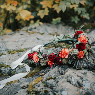 Nikki wanted her wedding flowers to have fall colors of burgundy, orange and blue with hints of feathers. I absolutely loved the grasses that Natasha from Paper Peony incorporated. Her bouquet and head piece were some of my favorite this season.