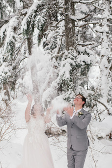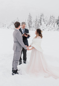 Alysia and Avery wanted a religious service, so we connected them with a local pastor, Pastor Dahms. He is such a thoughtful and kind person, he even brought snow shoes with him to help tromp down a trail out to the ceremony location.