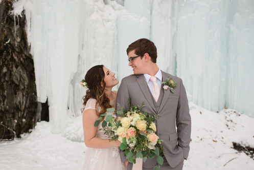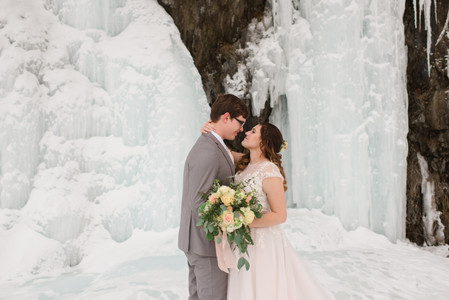 Romantic Winter Ceremony with Ice Falls and Vintage Touches